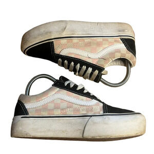 VANS Old Skool Black/Pink Checkerboard Platform Canvas Suede Sneakers M4.5/W6