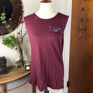 VANS Oversized Tropical Muscle Tank Burgundy Red Size XS