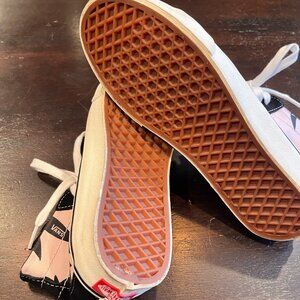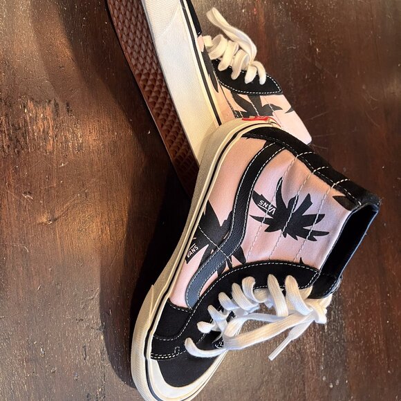 VANS PALM TREE PRINT HI-TOP CANVAS SK8 SHOES PINK/BLACK Womens 8.5
