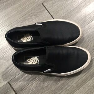VANS PERFECT BLACK LEATHER SLIP-ON SNEAKERS size 6 women’s size 4.5 men’s