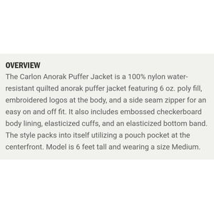 Nice Quilted Camo puffer jacket, 100% water resistant nylon. Perfect for fall and winter!