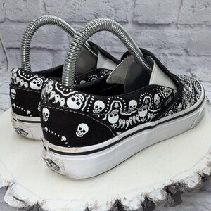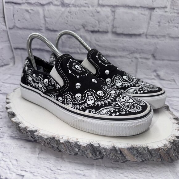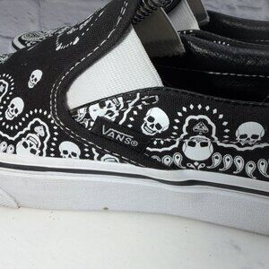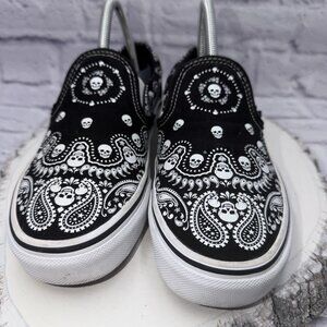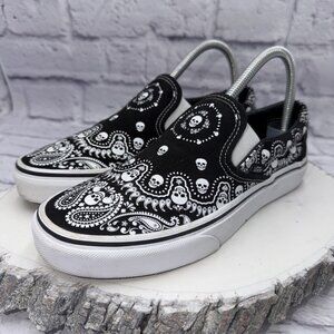 VANS Rare Classic Slip On Black Bandana Paisley Skull Print Shoes M 5.5 W 7