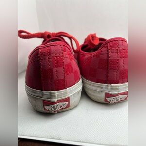 Vans authentic pro, reflective checker board shoes in red. US size 7.5 men’s or 9 women’s.