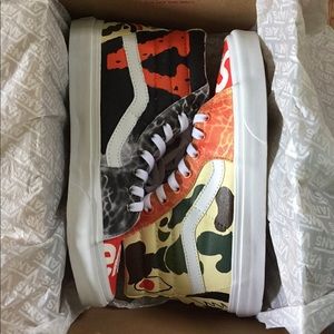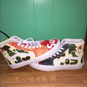 Selling these Vans Custom Shoes. Never worn, fresh out the box. Supreme/Bape/Vlone. These get some attention. You can never go wrong with some Vans! Hmu if interested!