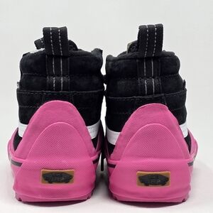 Step out in style with these Vans high-top sneakers, featuring a striking black and pink design. Perfect for adding a pop of color to any outfit.