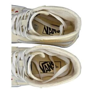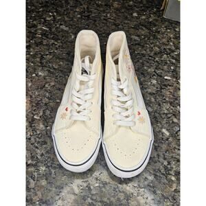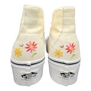 The VANS Sk8-Hi Tapered Platform Lace shoes are a unisex sneaker designed for both men and women in size 4 for men and 5.5 for women. This high top shoe features a floral pattern with lace-up closure, standard shoe width, and is made of suede and canvas materials. The classic white and true white color scheme adds a touch of elegance to the athletic style shoe, making it suitable for adults of any gender looking for a trendy and comfortable footwear option. The VANS Sk8-Hi model ensures both style and quality in this new design.