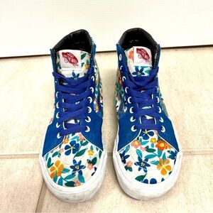 VANS SK8-Hi toptrainers blue floral tropical checked sneakers women’s size 8.5M