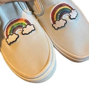 VANS SLIP-ON LIGHT BLUE WITH SEQUINED RAINBOW ON FRONT WOMENS 8.5 JUNIORS 7 EU 39
