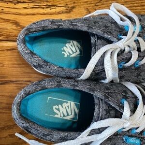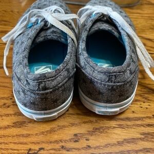 VANS STARS SHOE GRAY/BLACK YOUTH 3. Shoes are in good used condition. Toe rubber is a little worn, but over all a nice used shoe.