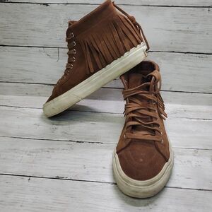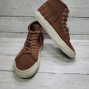 VANS SUEDE SK8-HI MOC BROWN LEATHER FRINGE SKATE SHOE MEN'S SIZE 5 WOMEN'S US6.5