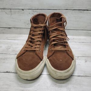 VANS SUEDE SK8-HI MOC BROWN LEATHER FRINGE SKATE SHOE MEN'S SIZE 5 WOMEN'S US6.5. Shoes are in great Pre-owned condition. Showing little wear on the outsoles, the insoles and the shoe overall as shown in pictures. All pictures are from the actual item. Please ask any question before buying
