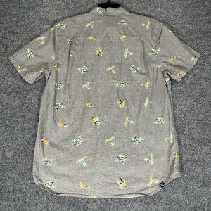 VANS Shirt Mens M Grey AOP Parrots Short Sleeve Button Up Pocket Skate Adult