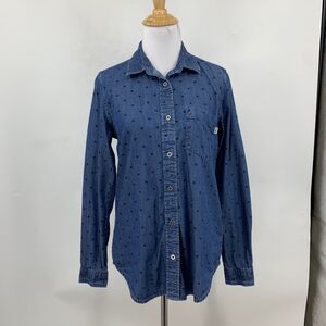 VANS Shirt Womens S Small Indigo Polka Dot Denim So Rowdy Droptail Spread Collar