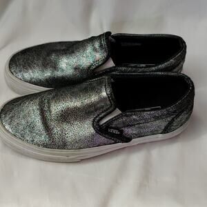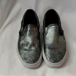 VANS Silver Slip on Sneakers Mens 5 /Women's 6.5 Casual Skater Classic Comfy