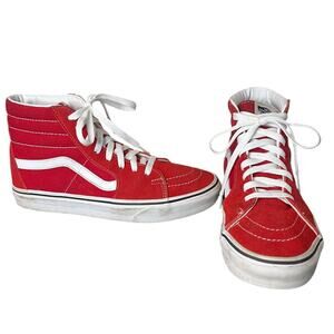 VANS Sk8-Hi Racing Red/True White Suede Leather High Top Shoe Mens Size 7.5