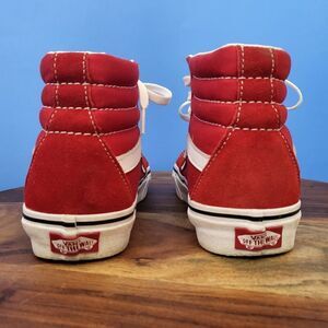 VANS Sk8-Hi Skate Shoe Size Women's 8.0, Men's 6.5 Hi-Top Suede Canvas Red EUC