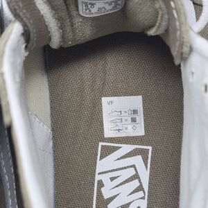 Vans sneakers featuring a white upper and gum sole. Classic and stylish design.