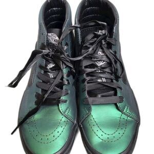 Vans limited edition Harry Potter sneaker in very good preowned condition. Metallic green with black accents. This unisex shoe is a size 6 men's/size 7.5 women's.