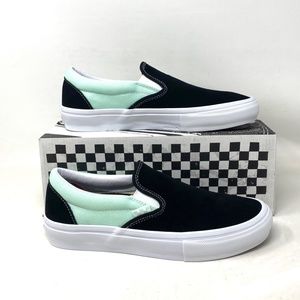 VANS Skate Slip On Sneakers For Women Mint Black Suede Canvas Casual VN0A5FCAM2T