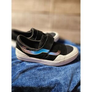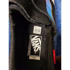 Brand-new Vans Slip-On Exp Pro Waffle Control, black with blue gradient signature stripe, US Men 8 or Women 10. Boasting enhanced functionality while still acknowledging the classic style that’s made the OG Slip-On legendary over the past five decades, the Exp Pro is built to satiate the needs of the modern-day skateboarder. Although the upper is still low-slung and laceless, it adds several alternate features. These tweaks include a Velcro strap that reaches across the top of the foot for lockdown and a printed Jazz Stripe on both the lateral and medial sides that fades into the toebox and collar. The midsole’s rubber then rises up onto the upper’s lower half for durability and protection against a multitude of tricks. However, what’s on the inside and bottom may very well be the most interesting pieces. The outsole features Vans’s new WaffleControl technology, a system that strips back the midsole so the wearer’s foot is separated from the board by fewer parts. The tread is intentionally deeper on the heel to soften impact while increasing grip and durability.