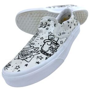 VANS Tattoo White Canvas Slip-on Sneakers 11.5(W) 9(M)