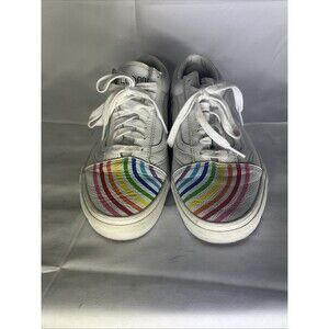 The VANS UA Old Skool Flour Shop Rainbow Leather shoes in size 9.5 for men and 11 for women are a stylish and unique addition to any wardrobe. These sneakers feature a white color with a royal theme, made with leather upper material and a medium width for comfortable wear. With a vintage style and athletic performance, these VANS shoes are perfect for casual walking and everyday wear. Show off your individuality with these eye-catching sneakers from the VANS UA Old Skool collection.