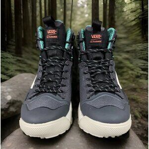 NEW !! These Vans UltraRange Exo HI Gore-Tex MTE-3 boots are perfect for any outdoor activity. With a round toe and lace-up closure, they provide both comfort and support. The gray color and solid pattern make them stylish and versatile for any occasion.