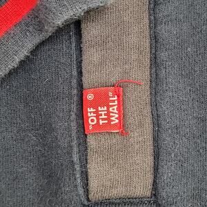 VANS Varsity Snap Hoodie Jacket Medium 22x25 Colorblock Cropped Black Gray Red Trim Cotton Poly Fleece