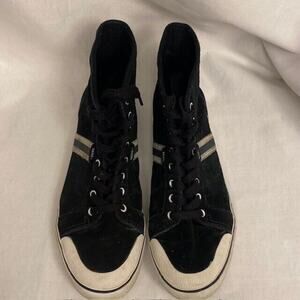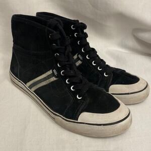 VANS Wellesley Black Suede Skater Hi Top Sneaker Stripe Womens 9.5 Mens 7.5