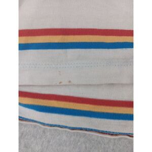 VANS Women's Boxy Striped Cropped T-shirt Red Yellow Blue White Size L Vtg Logo