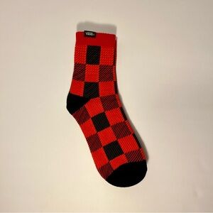 Elevate your casual look with these Vans crew socks, featuring a bold red and black checkered pattern. Designed for comfort and style, these socks are perfect for adding a pop of color to any outfit.
