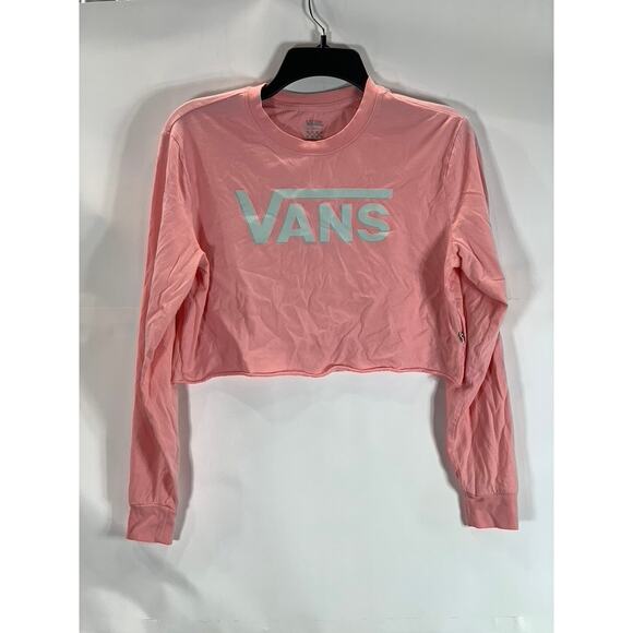 VANS Women's Salmon Pink Long Sleeve Cropped Logo T Shirt SZ XS