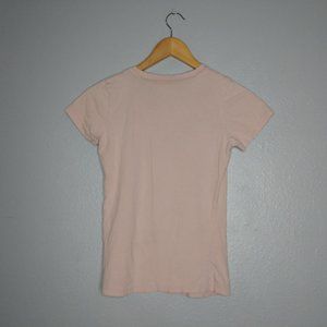 VANS Womens Small Light Pink Sheer Sequin Logo Short Sleeve Shirt Fringe