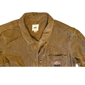 VANS Womens medium Overtime embroidered red Rose Corduroy Button Up Shirt