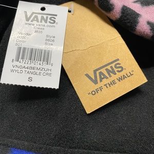 VANS Wyld Tangle Crew Sweatshirt Pullover Patchwork Leopard Size VN0A4BEMZUH Brand new with tag. 100% AUTHENTIC! The Wyld Tangle Crew Sweatshirt is a 100% polyester polar fleece pullover crewneck sweatshirt with an allover print, a colorblock patchwork design, logo embroidery at the sleeves, and a classic fit.