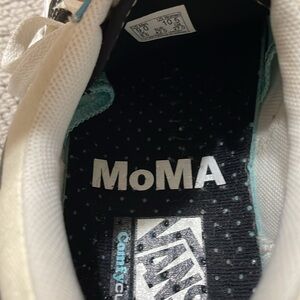 Vans X MOM old skool in good condition pre-owed very clean inside, right shoe has a stain not sure what kind it is, see pictures for more details. Size men’s 9 Women’s Size 10.5