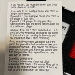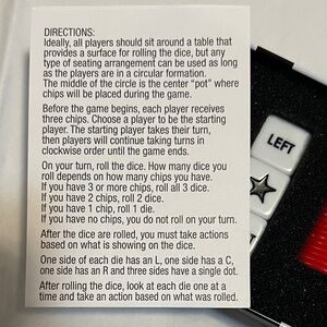 VANS ' Left, Right, and Center ' game . Approximately 3" x 4" . Part of the VANS Family Rewards program. No longer available.