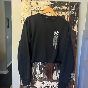 Stylish black cropped sweatshirt featuring a bold logo on the front. Perfect for casual wear. Washed and fresh. From smoke free home. Bundle and save. Nice and comfy.