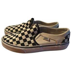 VANS women’s slip on sneakers cream/black checkered skater size 7