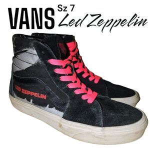 VANS x LED ZEPPELIN Sz 7 Blk Suede SK8-Hi 50th Anniv Grunge Skater Punk Shoes