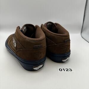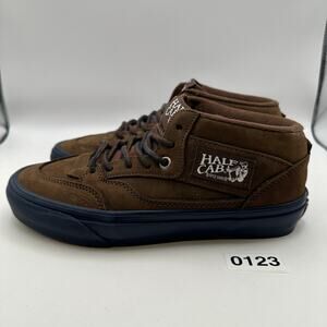 Step up your shoe game with these awesome VANS x NICK MICHEL Half Cab sneakers! These are a men's size 6 and feature a stylish brown and navy blue suede upper. Perfect for skating or just rocking a cool, casual look. They are in great condition, ready for a new home. Don't miss out – grab them now and add some serious style to your wardrobe!