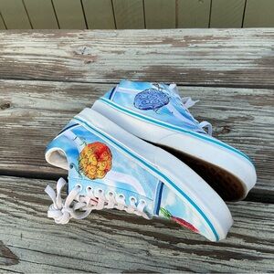 VANS x One Piece Old Skool Devil Fruit Sneakers Shoes Blue Mens 5.5 Womens 7 NEW Unique Vans sneakers with colorful fruit designs. Features vibrant red and purple accents. Perfect for a bold look. In good, pretty love conditions.