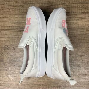 VANS Off The Wall Slip On White “I love Vans” Shoes.. textured blue heart..size 2.5