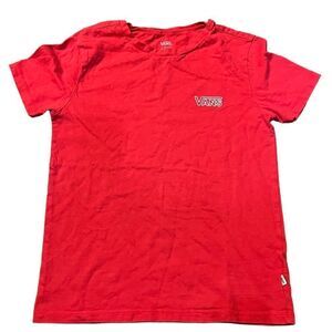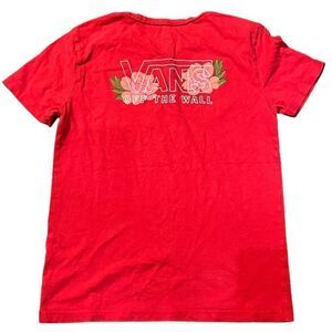 Vans bright red short sleeve tee with floral logo rose graphic on the back