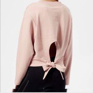 VARLEY L Light Pink Weymouth Tie Open Back Crewneck Pullover Sweater Terry Knit