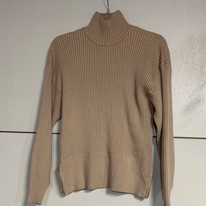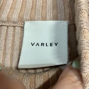 VARLEY MAYFAIR MOCK NECK KNIT SWEATER BEIGE TAN RIBBED XS