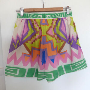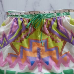 Notes: See all photos for details, tags, and pattern/color accuracy. retro - art deco- colorful - printed - multicolor - pastel- lightweight- gauzy- lined - resort - vacation shorts