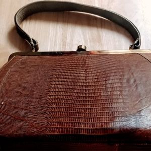 VASSAR VERY VINTAGE GENUINE LIZARD HANDBAG, CARAMEL COLOR. EXCELLENT CONDITION.