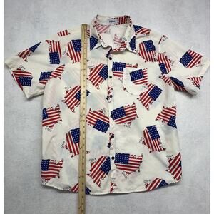 VATPAVE Mens Size XL Hawaiian Shirts America Red White Blue Button Short Sleeve