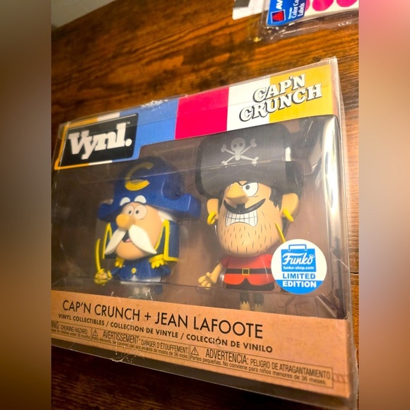 Step up your Funko collection with this limited edition Funko VYNL. figure set featuring the iconic Cap'n Crunch and his trusty sidekick, Jean LaFoote. This vibrant and colorful vinyl figure set is perfect for any Funko collector or cereal enthusiast. The figures are brand new and come in a protector to ensure their safety.